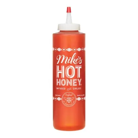 Þetta er svokallað „sweet-heat combo“, blanda af hunangi og chili eða eins og þeir kalla það, Honey with a Kick! Fullkomið til að toppa pizzuna, grillaða kjúklinginn eða grillmatinn og út í dressingar og marineringar. Prófaðu einnig að para þetta með þínum uppáhalds osti nú eða setja þetta í kokteila eða te. Þetta er búið til úr 100% hreinu hunangi, ekta chili og ediki. Mike’s Hot Honey er 100% náttúrulegt, án glútens og inniheldur engan gervisykur eða rotvarnarefni. Flaskan er hönnuð fyrir stóreldhús og er afar handhæg í notkun.