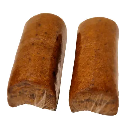 Frosið bragga rúgbrauð. 300 gr. hver braggi og 18 í kassa. Tilvalið að setja beint úr frosti í 50-60°C heitan ofn í ca 30-50 mínútur. Þá verða þau eins og ný og bera þau fram volg fyrir gestina.