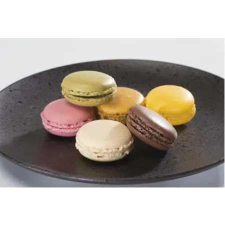 Makkarónur 10 g, 6 gerðir í kassa sem innihalda, pistasíu, vanillu, kaffi, sítrónu, súkkulaði og hindberjabragð, ekta franskar makkarónur. Afþíðið 1 ½ - 2 tíma við 0-4°C