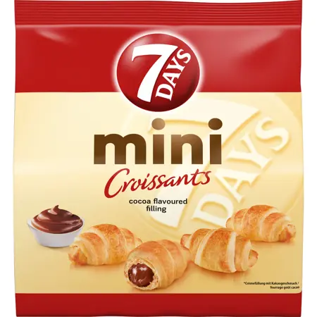 Lítil croissant/smjördeigshorn úr ljúffengu og léttu deigi með súkkulaðifyllingu. Tilvalið að deila með fjölskyldu og vinum seinni part dags.