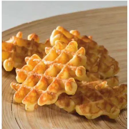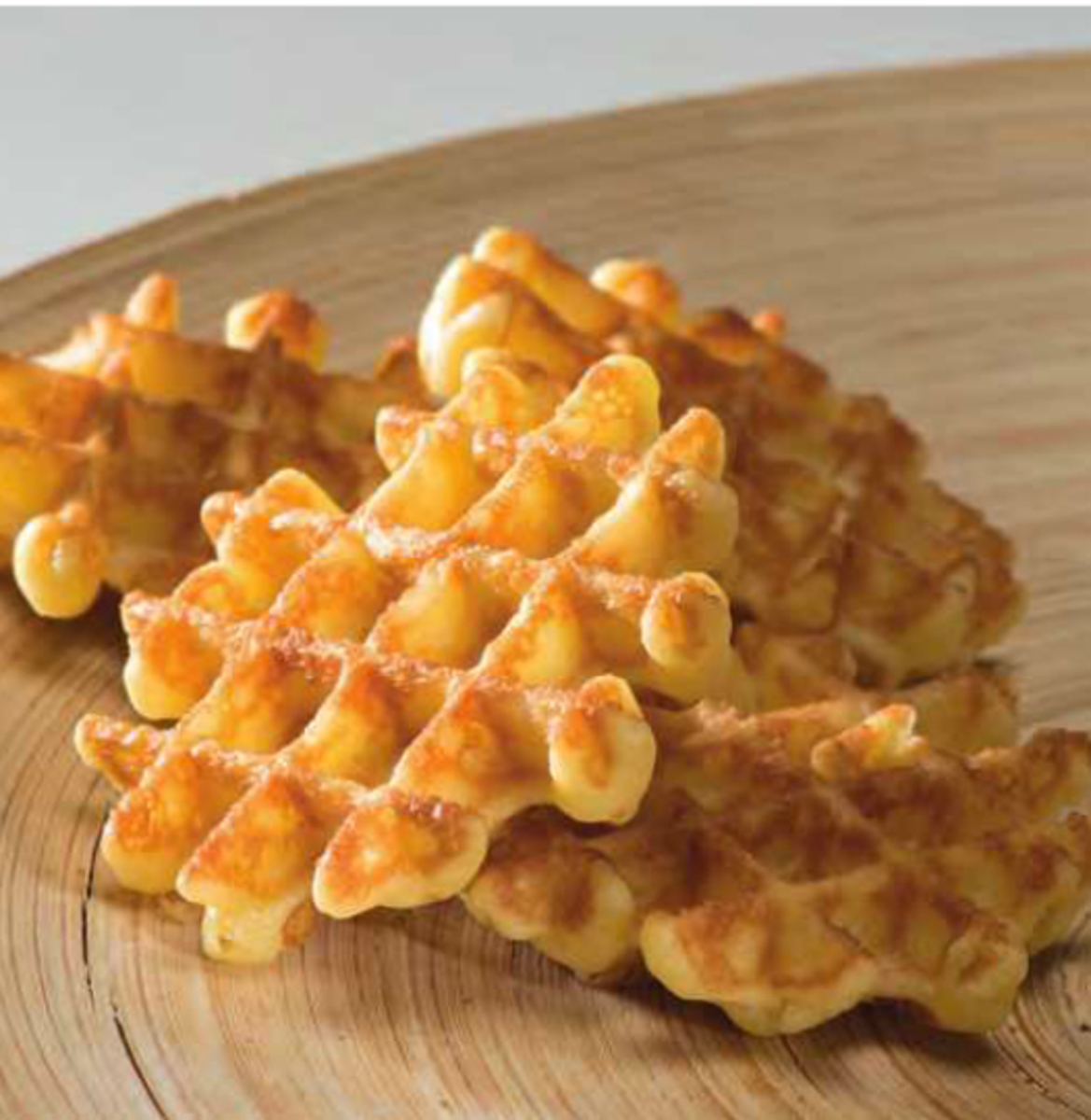 Vöfflur með sykri. Í hverjum kassa eru 120 stk. Hver vaffla er 12gr. Afþíðið í 30 mín, við 0-4°C.