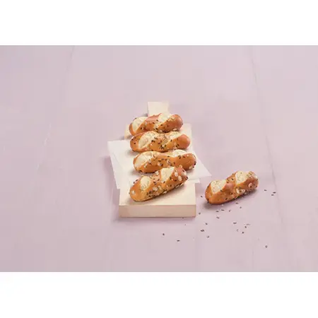 Fullbökuð vara, þarf aðeins að afþíða í ca.1 klst. Gott að skerpa aðeins á þessri vöru í ofni.