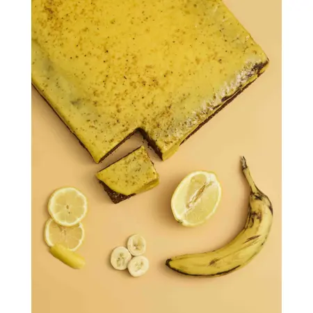 Banana-Sítrónu kaka, fleki óskorin. Afþíðið við stofuhita í 3 klst.