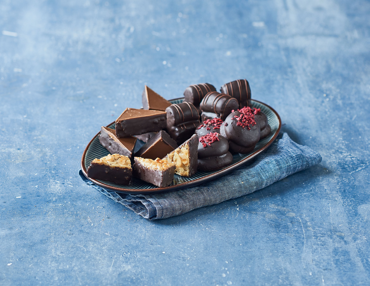 Fullbökuð vara Afþíðið í kæli við 5°C í ca.2-3klst. Best að afþíða í umbúðunum. 4 tegundir, 20 stk. Kertemindestang Nougattrekanter Sarah Bernhard Nöddetrekanter