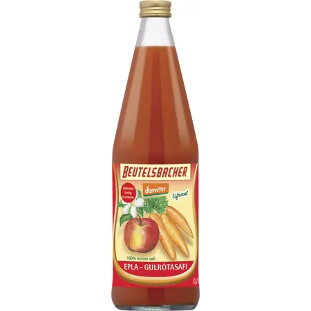 Lífrænn safi frá Beutelsbacher sem inniheldur engin rotvarnarefni, ensím eða önnur aukefni eru notuð við framleiðslu safanna. Demetervottaður safi.