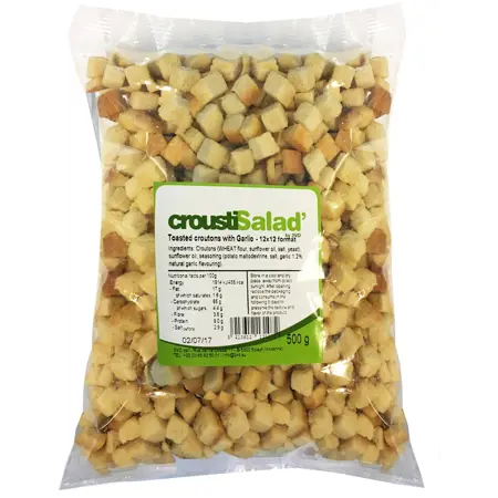 Brauðteningar frá Crousti Salad með hvítlauk.