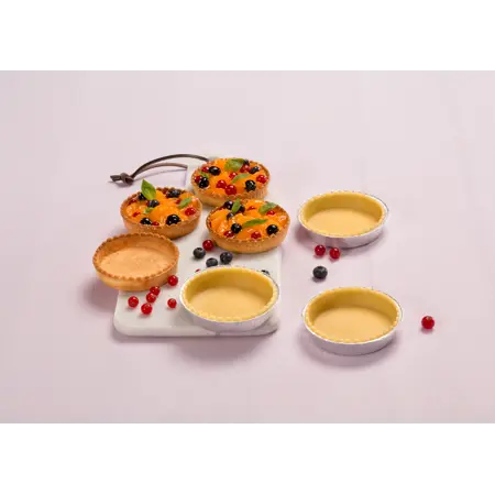 Tart botn sætt deig óbakað í álformi stærð 10 cm, hentar vel til að gera deserta og baka með fyllingar í forminu Bakið í 15-17 mínútur við 180°C.