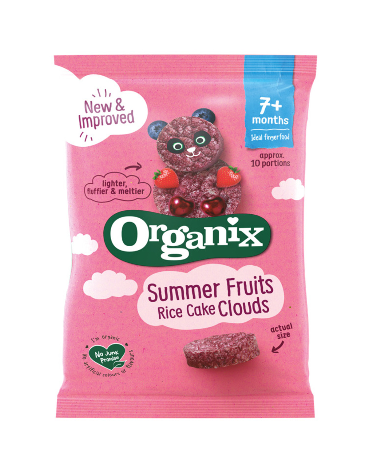 Fyrir börn frá 7 mánaða aldri. Fullkomin stærð fyrir litla fingur. Kökurnar eru nógu stífar til að molna ekki en mjúkar fyrir litla góma. Í kökurnar eru bætt safa úr ávöxtum en engum aukaefnum sem á við um allar vörur frá ORGANIX.