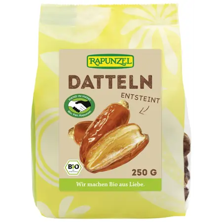 Lífrænt ræktaðar döðlur frá Rapunzel. Döðlurnar eru steinlausar.