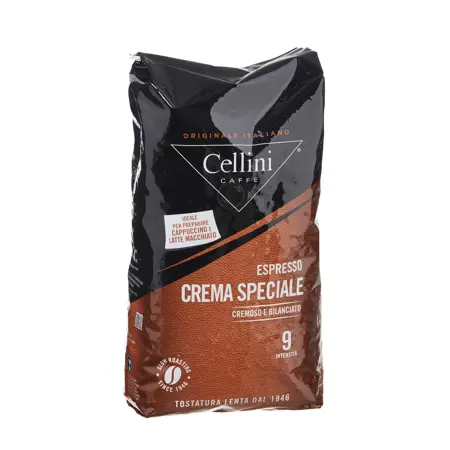 Þessi blanda er samsett úr 60% Arabica baunum og 40% Robusta baunum. Baunirnar eru dökkristaðar og bera með sér mikinn súkkulaðikeim sem og mjög mikla fyllingu. Þessi tegund hentar einstaklega vel í mjólkurdrykki, þ.e cappuccinio, caffé latté og latté macchiato, en getur samt sem áður staðið ein og sér sem espresso. Tostatura Lenta / Kaffibaunaristun:: Allar baunategundir sem frá Cellini koma eru ristaðar eftir þessari aðferð, en hún felur í sér að baunirnar eru ristaðar á mjög mjúkan og hægan hátt í tromlu. Ferlið fer fram við 210-220°hita og tekur um 14-16 mínútur. Þessi aðferð tryggir að allar baunirnar ristast á jafnan hátt, sem síðar skilar sér í hárnákvæmum og jöfnum gæðum.