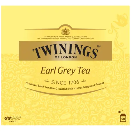 Svart te. Klassíska Earl Grey blandan frá Twinings er í grunnin úr Keemun te og með skvettu af Bergamot olíu.