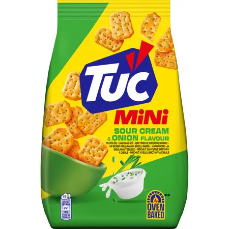 TUC Mini er minni útgáfa af TUC-kexi en er með klassísku TUC-bragði. Þessir stökku og léttsöltuðu kexbitar eru fullkomnir til að fá sér á ferðinni eða deila með vinum. TUC Mini er með sama ljúffenga bragðið og stökku áferðina og TUC-kexið, en í bita stærð. Njóttu bragðsins af TUC Mini hvenær og hvar sem er.