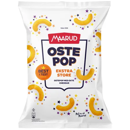 Það þekkja allir Maarud, hið fullkomna snakk til að njóta með fjölskyldu, vinum og fólkinu sem þú skemmtir þér best með. Hér er á ferðinni Ostepop XL snakk með ekta cheddar osti.