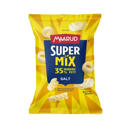 Það þekkja allir Maarud, hið fullkomna snakk til að njóta með fjölskyldu, vinum og fólkinu sem þú skemmtir þér best með. Nú er Supermixið í nýjum búning með 35% minni fitu.