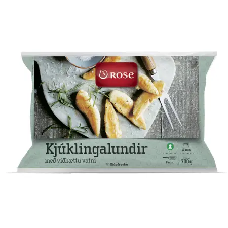Kjúklingalundir með viðbættu vatni (17%). Djúpfryst og skráargats merkt vara.
