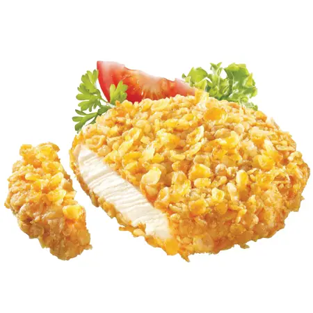 Kjúklingaborgari húðaður(breaded). Full elduð vara. Eldist beint úr frosti við 200°C í ca.9-10 mín. Djúpsteikist við 175°C í 3-4 mín