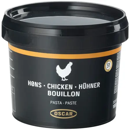51 Lítrar af soði úr 1 kg. Mælieiningin er 20 gr. í hvern ltr. Kraftinn má leysa upp í sjóðandi vatni eða bæta beint út í réttina.
