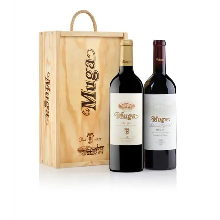 ATH! ef magn á lager er ekki nægjanlegt, vinsamlegast hafið samband við söluver. Muga Reserva, Muga Seleccion Especial í fallegum trékassa. Fullkomin gjöf fyrir vínunnandann.