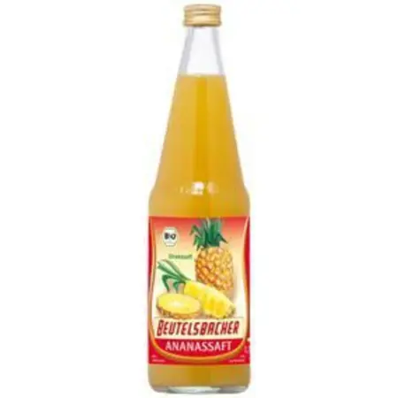 Lífrænn safi frá Beutelsbacher sem inniheldur engin rotvarnarefni, ensím eða önnur aukefni eru notuð við framleiðslu safanna. Ananassafinn inniheldur ensím sem eru góð fyrir meltinguna.