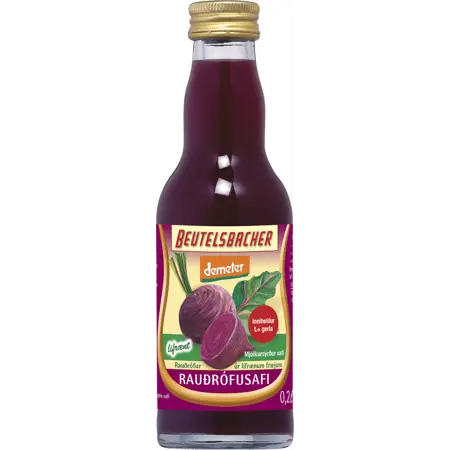 Lífrænn safi frá Beutelsbacher sem inniheldur engin rotvarnarefni, ensím eða önnur aukefni eru notuð við framleiðslu safanna. Demetervottaður safi. Góður fyrir blóðrásina, járnríkur. Hjálpar líkamanum að hreinsa sig.