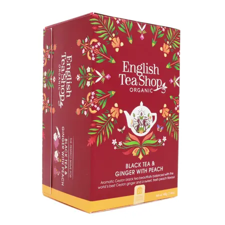 Hressandi svört og lífræn teblanda af skörpu engiferi og ilmríkum ferskjum sem kemur á óvart.