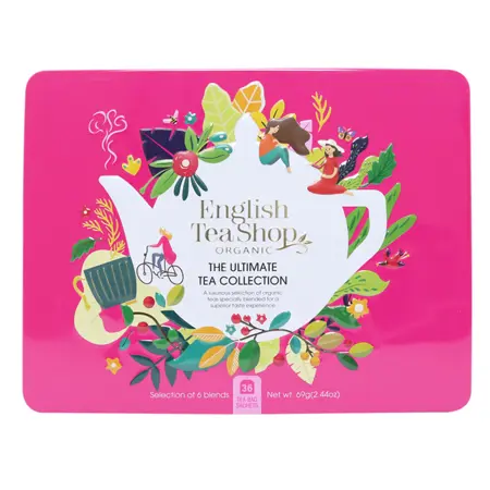 Falleg askja úr áli sem inniheldur 36 tepoka í 6 mismunandi tegundum. (Single Origin Harrington‘s Black Tea, Super Berries, White Tea Blueberry & Elderflower, Lemongrass Ginger & Citrus, Green Tea Tropical, Cranbery Vanilla Delight)