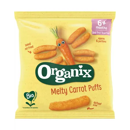 Fyrir börn frá 6 mánaða aldri. Framleitt úr lífrænum maís, létt og bragðgott snakk fyrir vaxandi börn. Fjölbreytt form snakksins hjálpar barninu við að æfa samhæfingu milli augna og handa.