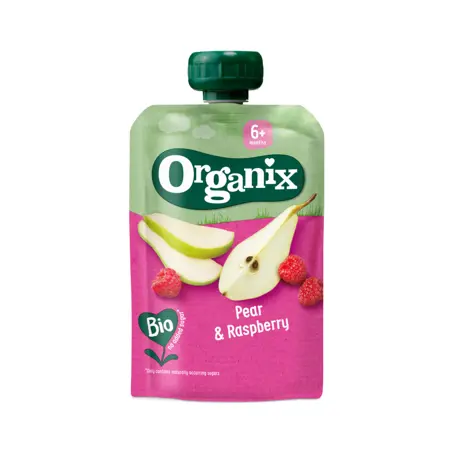 Skvísa fyrir börn frá 6 mánaða aldri. Skvísurnar eru gerðar úr blöndu af lífrænum ávöxtum, grænmeti og korni. Öll hráefni í Organix eru 100% lífræn, án gervi-, bragð- og litarefna.