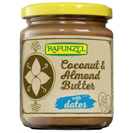 Lífrænt kókos- og möndlusmjör með döðlum. Smjörið inniheldur aðeins 3 innihaldsefni; 40% kókos, 40% möndlur og 20% döðlur. Tilvalið til að nota sem álegg, í baksturinn og matreiðslu eða eitt og sér.