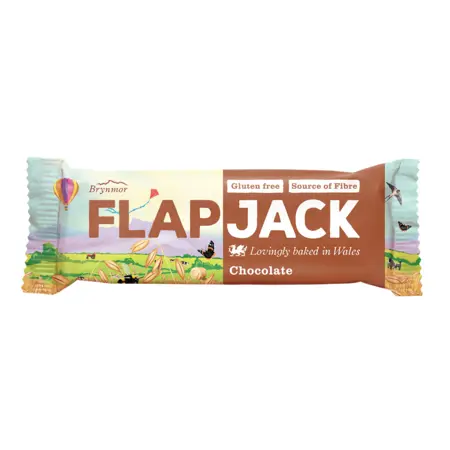 FlapJack er velskt merki sem leggur áherslu á að gera heilnæma hafrabari sem eru glútenlausir, trefjaríkir og seðjandi grænmetisfæði. Flapjack með súkkulaði er glútenlaus