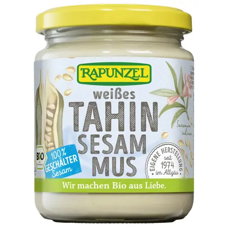 Sesamsmjör (tahini) úr afhýddum sesamfræjum.