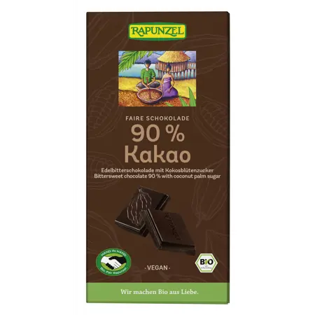90% súkkulaði – hreint og heiðarlegt sælgæti framleitt úr sanngirnisvottuðu úrvalskakói gefur þessu súkkulaði djúpt og kröftugt bragð. Fínn karamellukeimur frá lífrænum kókosblómasykri mýkir dökka tónana – og silkimjúk bráðnunin í munni fullkomnar upplifunina. Rapunzel súkkulaði stendur fyrir hæsta gæðaflokk, unnið í anda svissneskrar súkkulaðihefðar og búið til úr lífrænum, sanngjörnum hráefnum. Leyndarmálið? Conchering – sú list að vinna úr kakóinu á löngum tíma og ná þannig fram ríkulegri dýpt bragðsins, flauelsmjúkri áferð og einstakri munnfyllingu sem eykst með hverri bita.