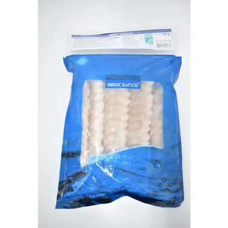 Vannamei risarækjuspjót með rækjum í stærðinni 51/60. Pakkinn inniheldur 10 spjót. Íshúðuð vara, net þyngd 750 g.