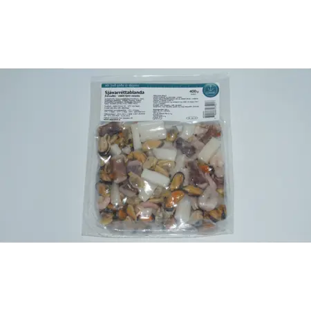 Inniheldur risasmokkfisk, krækling kúfskel, rækjur og kolkrabba.