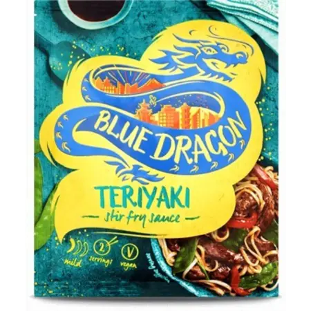 Teriyaki wok sósa í bréfi frá Blue Dragon sem hentar vel fyrir 2 máltíðir.