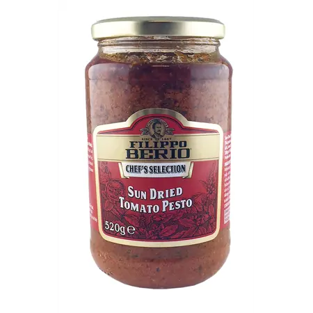 Rauða pestóið frá Filippo Berio er búið til úr sólþurrkuðum tómötum og Filippo Berio Extra Virgin ólífuolíu. Þetta pestó er fullkomið í hinar ýmsu pastauppskriftir, samlokur og bruschetta