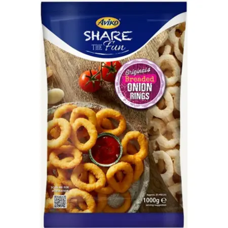 Laukhringir forsteiktir og snöggfrystir. Stærð 5,5-6,5 cm. Hver hringur er ca:16g. Hitað í ofni við 220°C í 15-20 mín. Gufuofn: 220°C í 15-20 mín. Djúp steiking. 175°C 1 1/2 -2 mín hver skammtur um 250 g. Í hverjum poka eru um 60 hringir.
