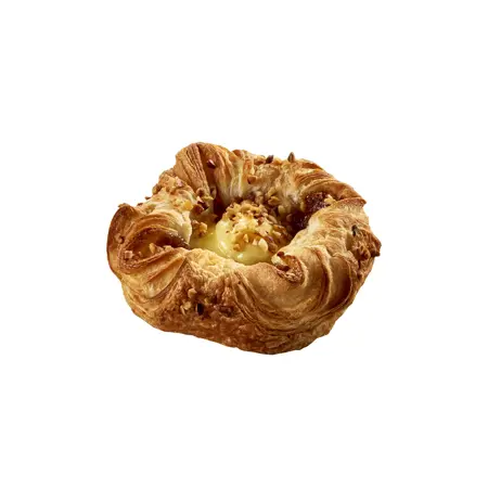 Vegan Happy Custard vínarbrauð sérbakað er klassískt vínarbrauð með sérstöku deigi sem inniheldur súrdeig, fylling er með brownie og karamellubragði og svo er varan toppuð með ljúffengu vanillukremi og söxuðum heslihnetum, ef þú vilt sætabrauð sem fær þig til að brosa þá skaltu velja Happy Custard. Bakist frosið við 190°C í 18-20 mínútur í forhituðum ofni. Inniheldur hveiti, glutenríkt kornheslihnetur og heslihnetuafurðir. Getur innihaldið snefið af hnetum.