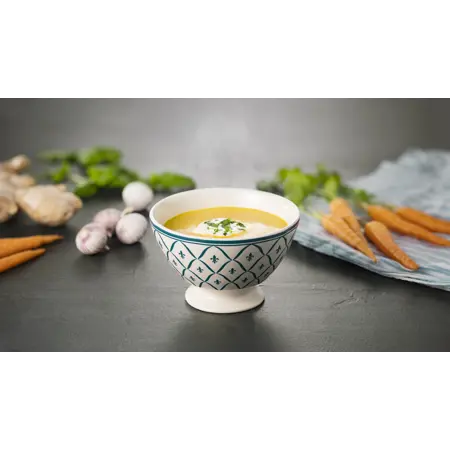 Fullelduð súpa sem þarf aðeins að hita. Tilvalið að bæta við kjúklingastrimlum eða öðru próteini. Tveir pokar passa fullkomlega í gastro bakka. Hægt að setja í gastro bakka og stilla á 15 mínútur og gufu eða afþýða undir heitu vatni.