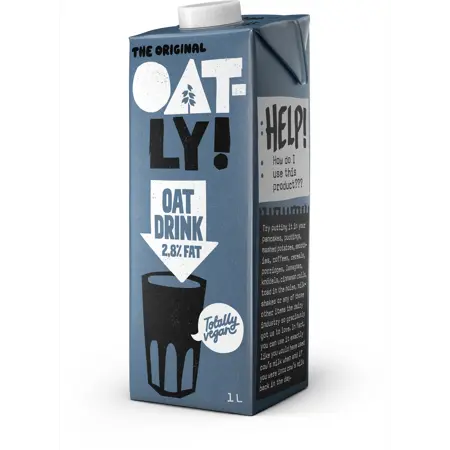 Svo að... þú hefur áhuga á lífinu á rjómahillunni og örlitlum lúxus lífsstíl en vilt á sama tíma halda lífinu plöntubundnu og algjörlega án venjulegu mjólkurinnar? Þá er augljóst að Oatly var að hugsa til þín þegar Haframjólkin með 2,8% fitu var búin til en það er hægt að geyma hana í næstum ár við stofuhita áður en fernan er opnuð. Eftir að þú hefur opnað hana má drekka mjólkina eða nota hana í eldamennsku, eða enn fremur baka brauð sem verður mjúkt og safaríkt. Haframjólkin frá Oatly er í 1ltr fernu en mjólkin er kalsíum- og vítamínbætt. Þessi mjólkurvara frá Oatly er ekki kælivara en mjólkin er best ísköld. Geyma skal mjólkina í kæli eftir opnun og neyta innan 5 daga frá opnun. Mjólkina er líka hægt að nota í stað kúamjólkur í hvað sem er, t.d. til drykkjar, í hafragrautinn, í kaffið, í heita kakóið í og alla matreiðslu o.m.fl.