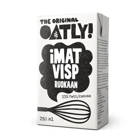 Oatly iMat Visp rjóminn er kominn! Njóttu þess að þeyta iMat VISP rjómann í dúnkennda dásemd sem heldur sér sérstaklega vel. Toppaðu kakóið þitt eða vöfflurnar eða jarðarberin, eða helltu rjómanum beint úr fernunni til að gera það sem þú ert að elda kremað og ljúffengt. Oatly iMat Visp tikkar í öll boxin á frábærum þeytirjóma, þar á meðal hið sjaldgæfa box, en mjög svo mikilvæga „NO COW“ box.
