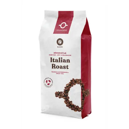 Italian Roast er dekksta kaffibaunablandan frá Te & Kaffi. Kaffið er bragðmikið, þétt og gefur langt eftirbragð. Lífrænar umbúðir og umhverfisvæn kaffibrennsla Umbúðirnar frá Te & Kaffi eru lífrænar og flokkast því í lífrænu tunnuna. Te & Kaffi ristar allt sitt kaffi á umhverfisvænan hátt með metangasi en metangas verður til úr lífrænum heimilisúrgangi. Te & Kaffi er því hægt og rólega að færa sig yfir í hringrásarhagkerfið en með þessari aðgerð núllast út nánast öll bein kolefnislosun á vegum Te & Kaffi á Íslandi.