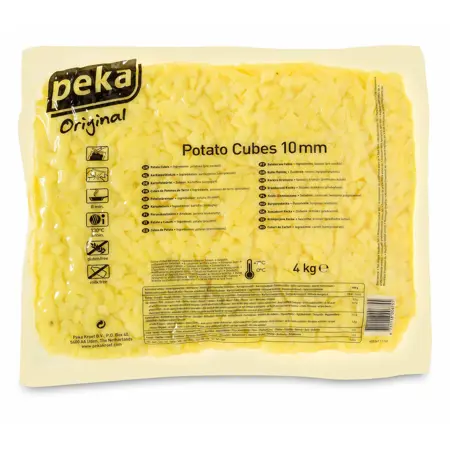 Foreldaðir kartöfluteningar 10x10mm. 4 kg í hverjum poka. Hitað í ofni í ca.4 mínútur í 100%raka. Ef steikt á pönnu ca.8 mín í olíu eða smjöri við miðlungs hita.