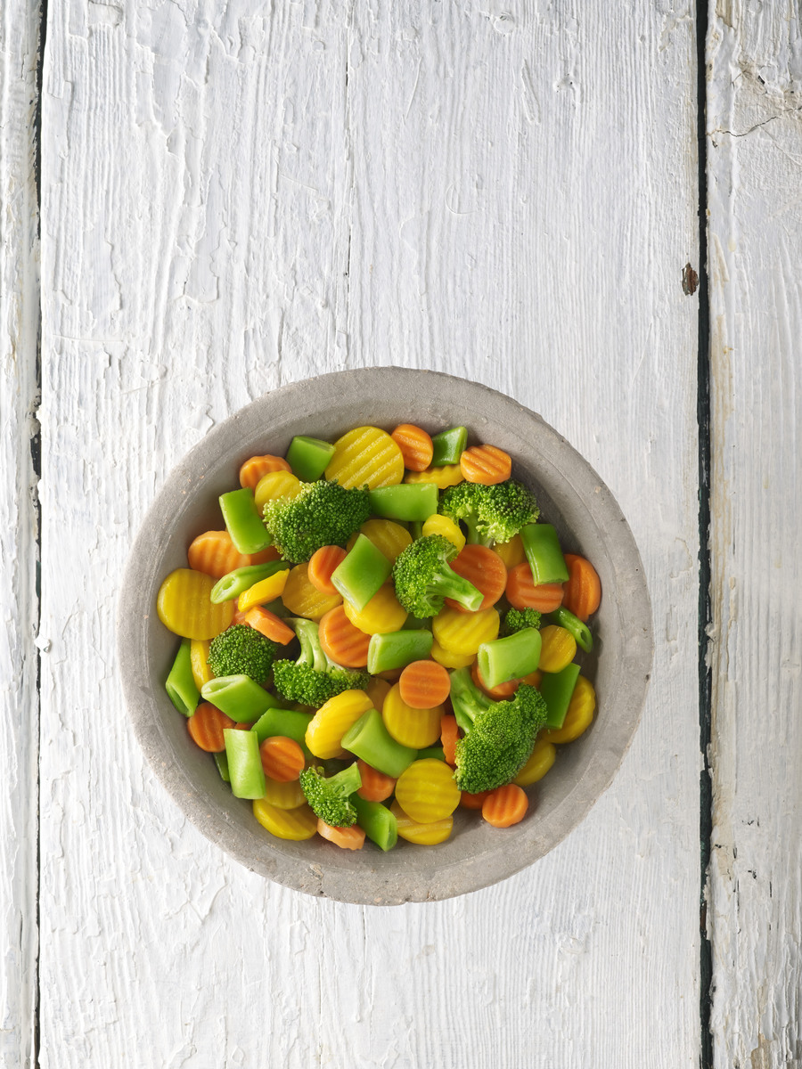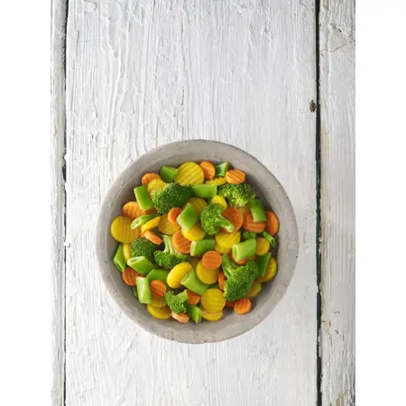 Blanda:Gular gulrætur, gulrætur, spergilkál, Romano baunir. Eldist beint úr frosti, meðhöndlið eins og ferskt grænmeti með styttri eldunartíma. Ekki ráðlegt að frysta aftur eftir að vara hefur verið afþiðin.