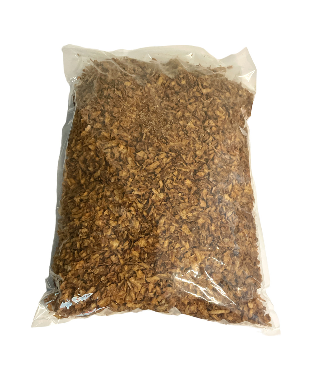 Steiktur laukur í stórum 2,5 kg pokum. 4 x 2,5 kg pokar í kassa.
