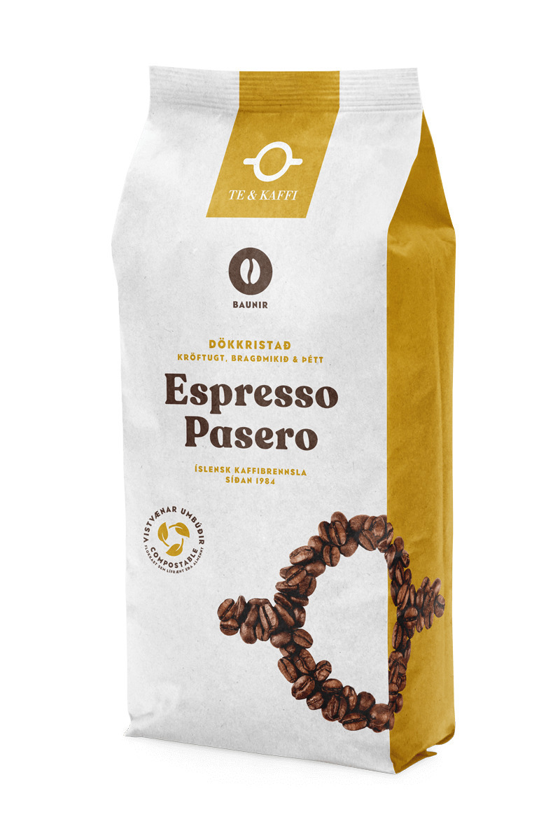 Mest selda kaffið á kaffihúsum Te & Kaffi. Dökkristuð og kröftug blanda frá þremur heimsálfum með náttúrulegum súkkulaðikeim í góðu jafnvægi við kryddað bragðið. Hentar vel sem espresso og sem kröftugt uppáhellt kaffi. Lífrænar umbúðir og umhverfisvæn kaffibrennsla Umbúðirnar frá Te & Kaffi eru lífrænar og flokkast því í lífrænu tunnuna. Te & Kaffi ristar allt sitt kaffi á umhverfisvænan hátt með metangasi en metangas verður til úr lífrænum heimilisúrgangi. Te & Kaffi er því hægt og rólega að færa sig yfir í hringrásarhagkerfið en með þessari aðgerð núllast út nánast öll bein kolefnislosun á vegum Te & Kaffi á Íslandi.