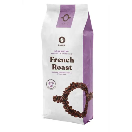 French Roast er dökkristað kaffi frá Te & Kaffi með löngu og miklu eftirbragði. Frönsk brennsla stendur fyrir ákveðið brennslustig þar sem kaffið er dökkristað og við það breytast bragðeiginleikar þess. Sykrurnar í bauninni brúnast meira og kaffið verður því skarpara og ilmríkara. LLífrænar umbúðir og umhverfisvæn kaffibrennsla Umbúðirnar frá Te & Kaffi eru lífrænar og flokkast því í lífrænu tunnuna. Te & Kaffi ristar allt sitt kaffi á umhverfisvænan hátt með metangasi en metangas verður til úr lífrænum heimilisúrgangi. Te & Kaffi er því hægt og rólega að færa sig yfir í hringrásarhagkerfið en með þessari aðgerð núllast út nánast öll bein kolefnislosun á vegum Te & Kaffi á Íslandi.