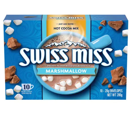 Swiss Miss er heitur kakódrykkur sem er tilvalinn við hin ýmsu tækifæri. Það er frábært að gæða sér á Swiss Miss á ferðalögum, í vinnunni eða þegar ætlunin er að hafa það notalegt heima. Swiss Miss kakódrykkurinn er fáanlegur bæði með og án sykurpúða, kaloríusnauður, í dósum og í bréfum. Swiss Miss er mest seldi heiti kakódrykkurinn á Íslandi.