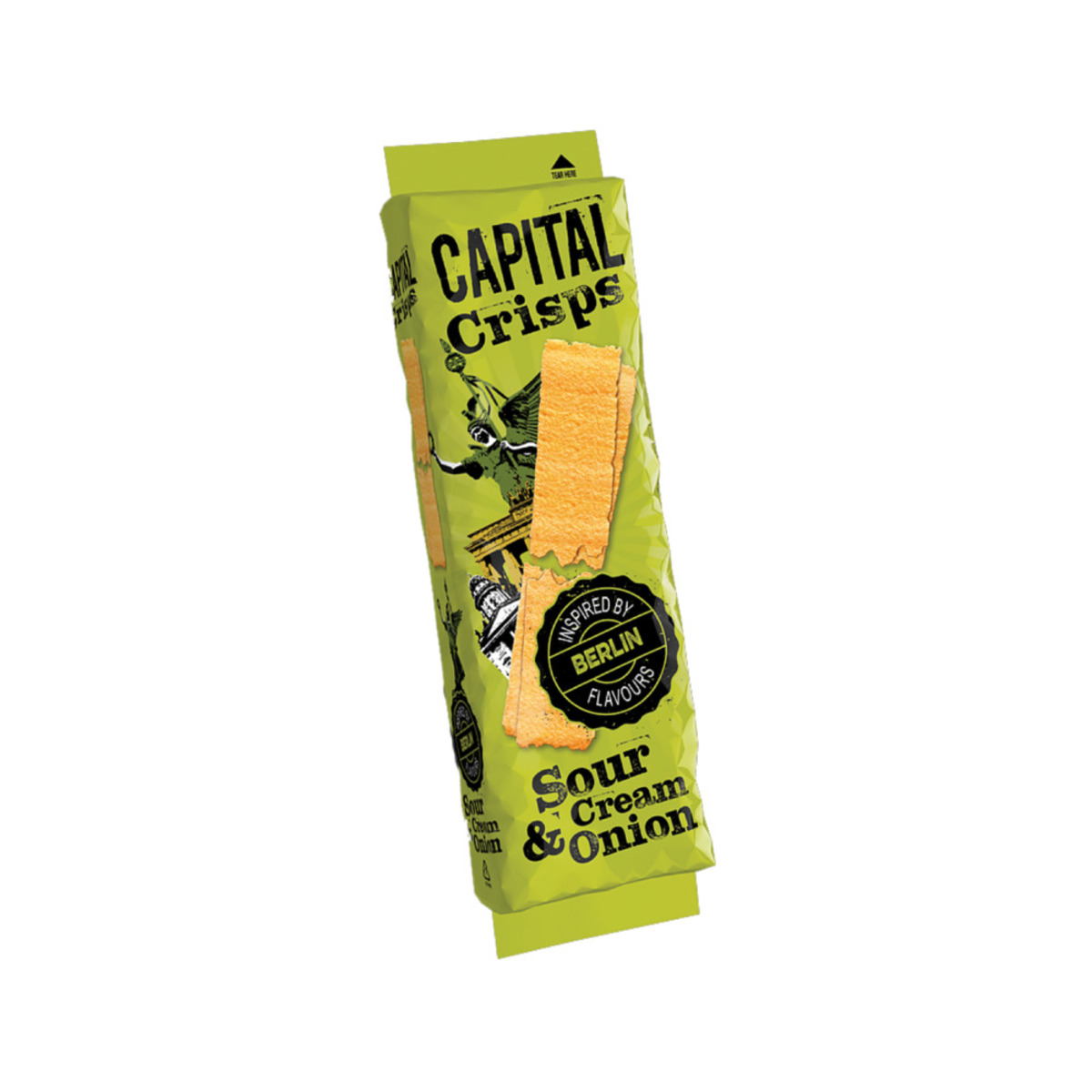 Já, Þjóðverjarnir kunna þetta. Nældu þér í Berlín beint í æð með snakki með sýrðum rjóma og lauk. Capital crisps eru kartöfluflögulengjur í handhægum umbúðum. Þær koma í 5 skemmtilegum bragðtegundum sem sem eru undir áhrifum frá mismunandi borgum í heimum