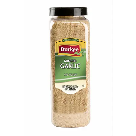 Hvítlaukur Brytjaður. Einfaldur í notkun og gæðin haldast stöðug. Grófari áferð en á Durkee möluðum hvítlauk. Durkee kryddin eru framleidd í Bandaríkjunum og eiga sér meira en 150 ára sögu. Gæðin tala sínu máli en Durkee kryddin eru möluð frosin þannig að olían og bragðið helst betur í kryddinu.
